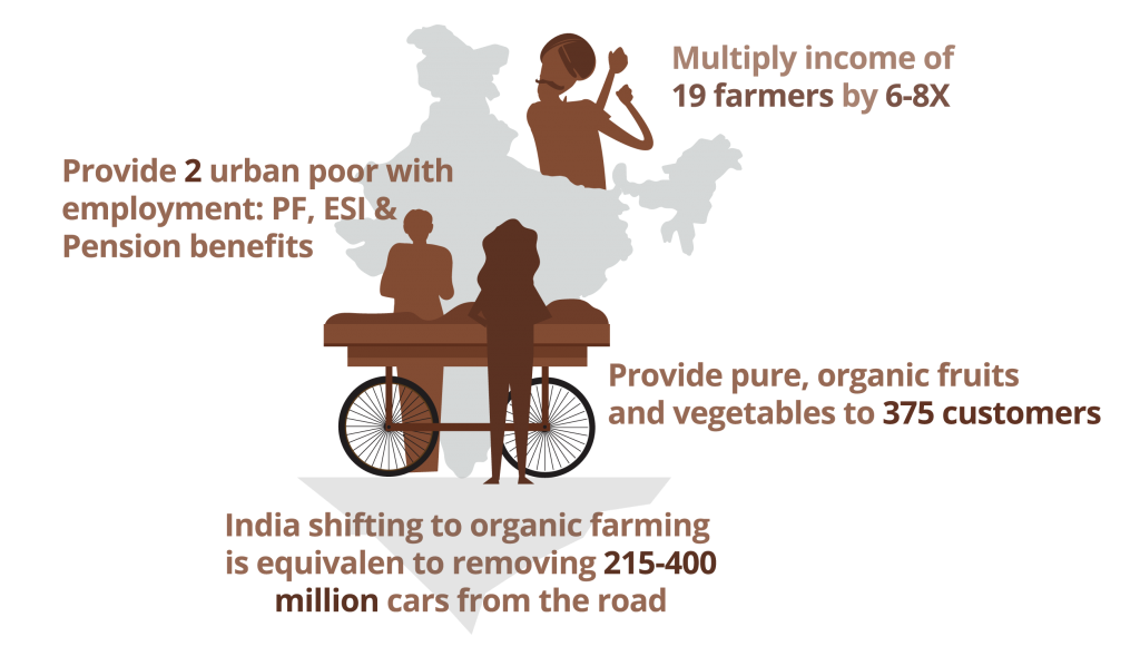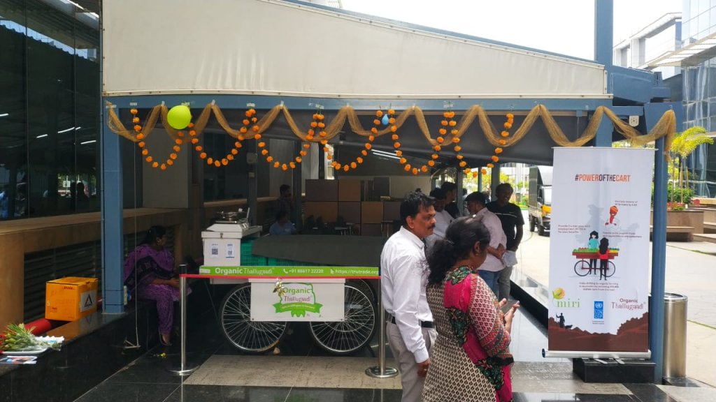 We launched a push cart. A simple, humble, organic fruits and vegetables push cart (Thallugaadi translates to push cart in Kannada). The cart is the vehicle through which we connect two vulnerable communities: small land-holding farmers & urban distressed street vendors.